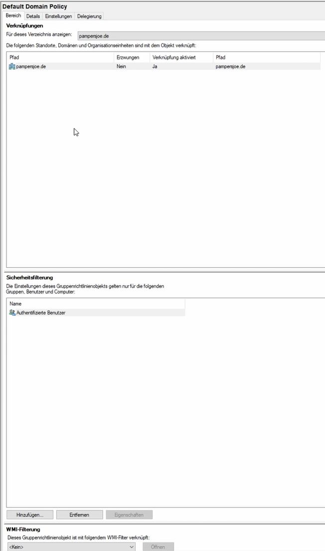 Der Erste nennt sich "Bereich". Rückblickend auf meine vorherige Aussage, dass wenn ihr eine GPO sucht und nicht wisst, wo sie verknüpft ist, dann findet Ihr genau hier die Bereiche, auf welche eine GPO zugewiesen sein kann.