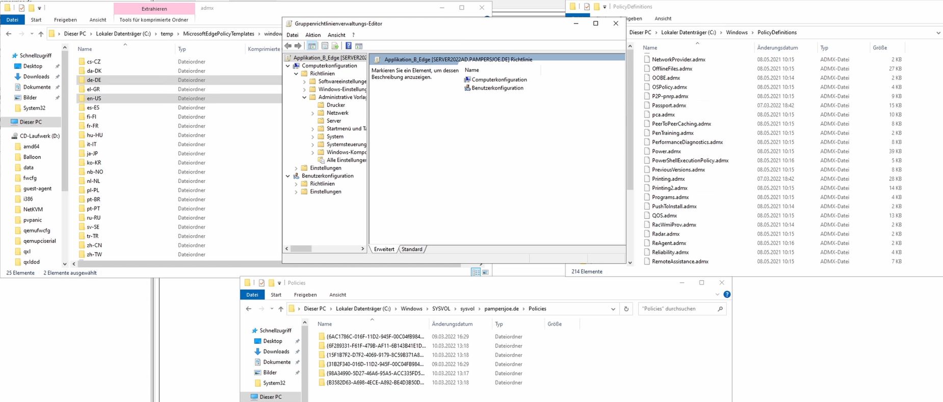 Im nachfolgenden Screenshot seht Ihr einmal den lokalen Store, den zentralen und AMDX-Files, die ich heruntergeladen habe für Edge Chromium. Weitere könnten z.B. sein für Office, für FIrefox, Chrome etc. etc.