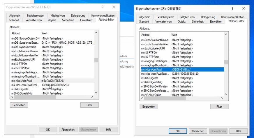 Wir benötigen Leserechte für das Passwort. Domänen-Admins haben schon "Vollzugriff" auf die zwei Attribute. Arbeitet Ihr jedoch schon mit dem Tier-Konzept, dann müssen wir die jeweiligen Admins entsprechend berechtigen. D.h. wir geben T2-Admins Leserechte auf Clients und T1-Admins Leserechte auf Server.